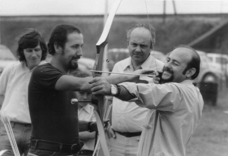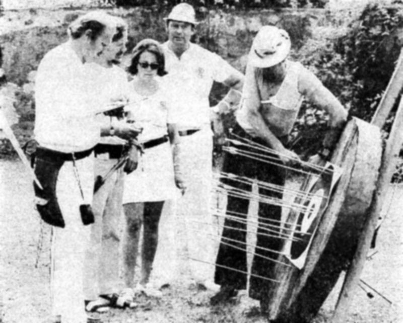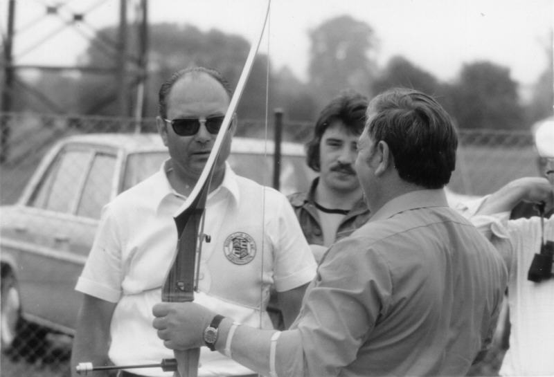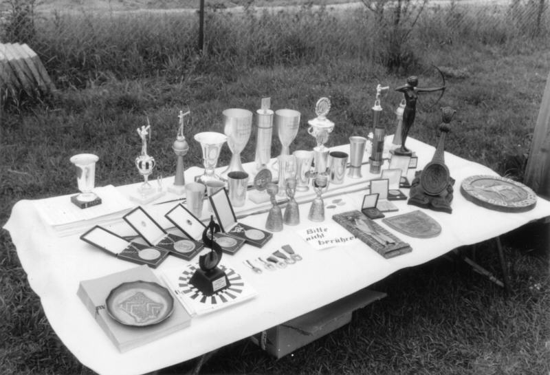 Bei den ersten deutschen Meisterschaften im Feldbogenschießen in Berlin - für die sich 36 Schützen qualifiziert hatten - siegte der Ahlener Klaus Helling (linkes Bild, Mitte) mit 503 Ringen vor Norbert Urban (Babenhausen, links) mit 498 und Dieter Schaab (Darmstadt, rechts) mit 491. Ringgleich mit Schaab wurde mit Helmut Krakau (rechts) ein weiterer Darmstädter Vierter.