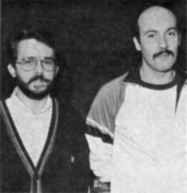 im Bogenschieß;en in der Schaafheimer Sporthalle wurde Manfred Kambor (links) vom Bogenclub Babenhausen. Sein Vereinskamerad Willi Berz wurde Zweiter (nicht auf dem Foto). Den 3. Platz belegte Harry Vohs aus Schaafheim. Foto: mr