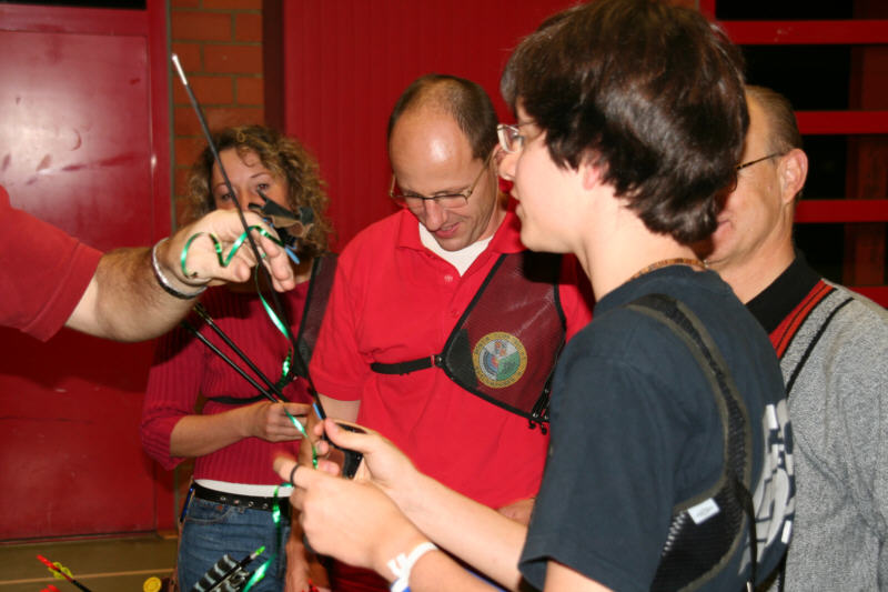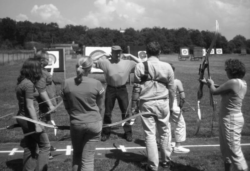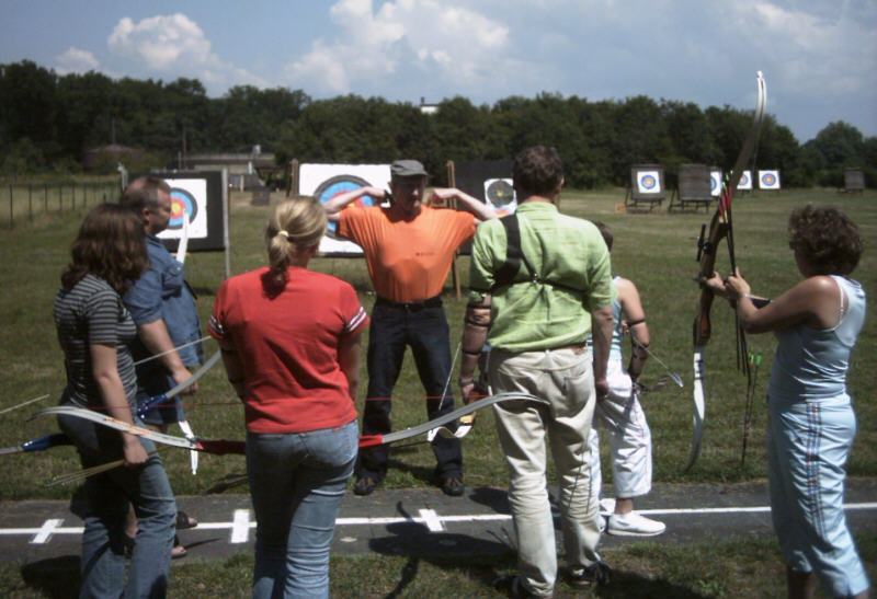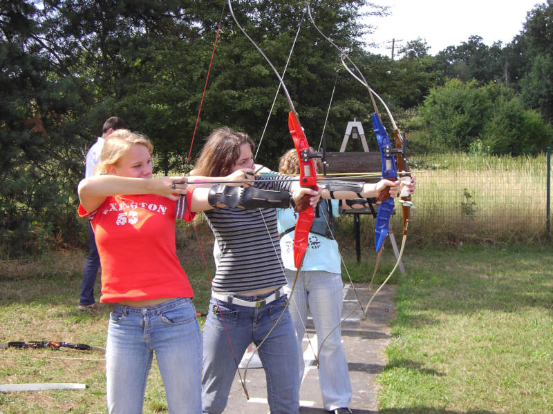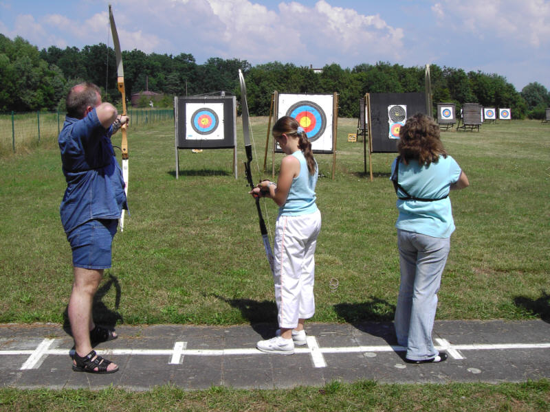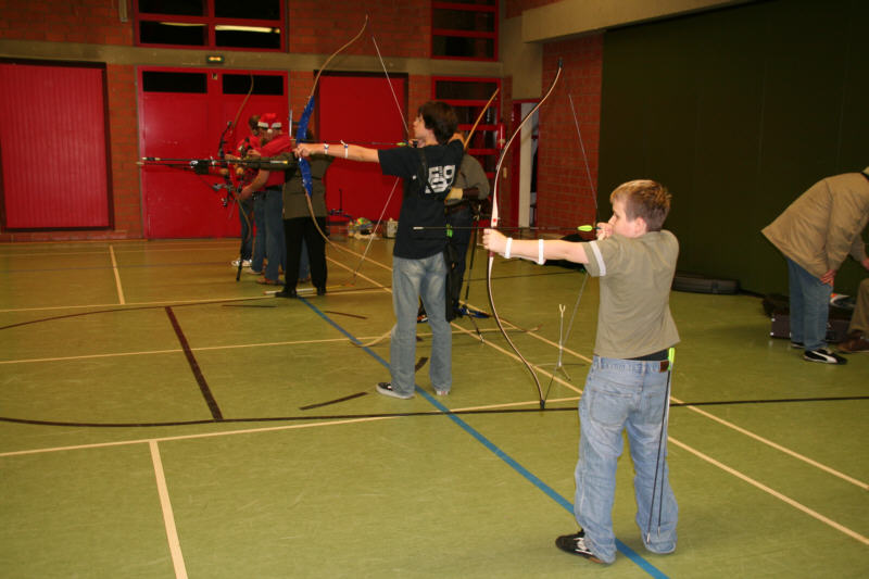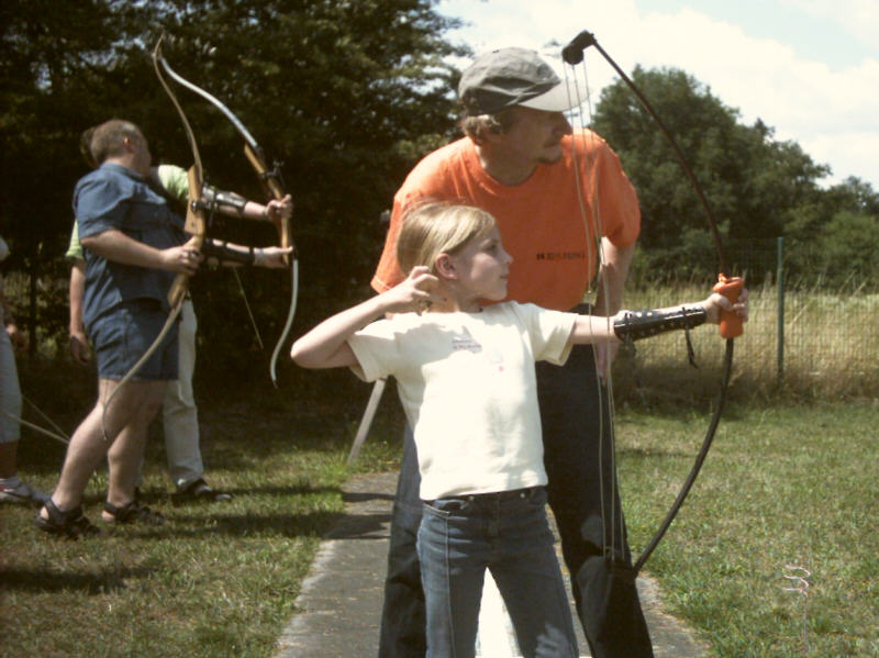 Nach einer sehr interessanten Einweisung im Bogensport und nach dem Anlegen der Schutzkleidung ging es los: Zuerst etwas unsicher, steigerten wir uns dermaßen hinein, dass das Aufhören (dunkle Wolken am Horizont!) besonders auch den Kindern, schwer fiel.