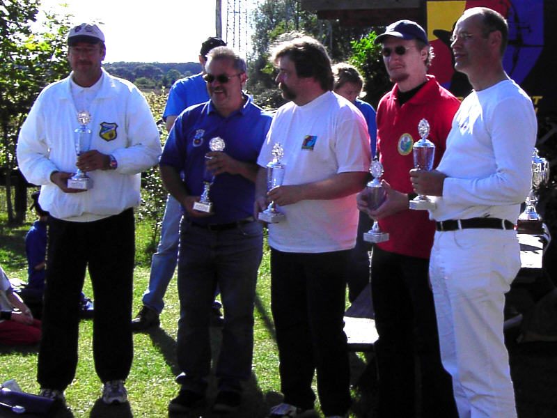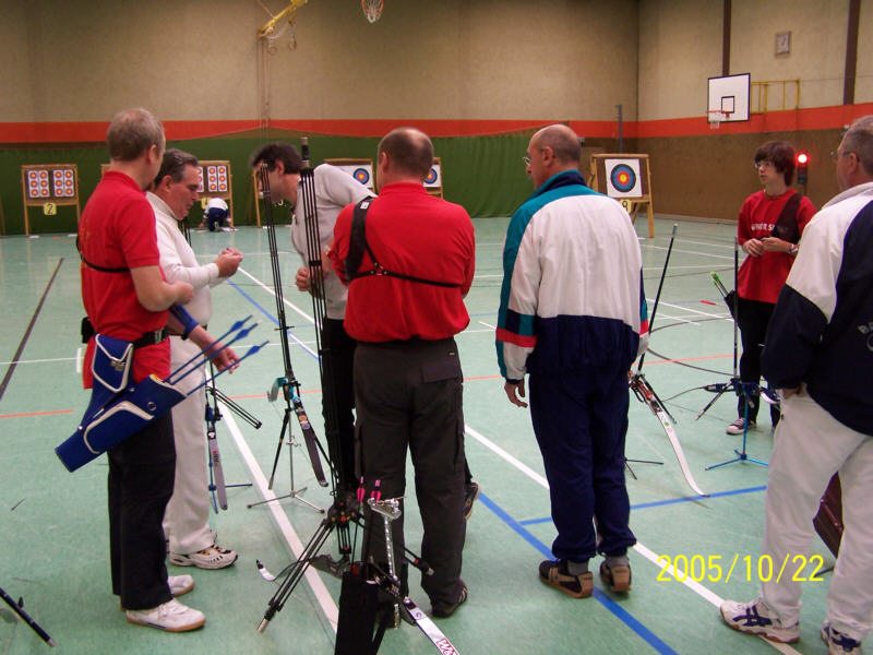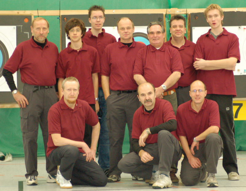in Darmstadt wurde von 5 Recurveschützen des BCB besucht. In der Schützenklasse belegte Robert Hitzel den 6. Platz mit 605 Ringen und Oliver Domhardt den 8. Platz mit 590 Ringen. In der Alterklasse Recurve konnte Hans-Jürgen Eich den 2. Platz mit 652 Ringen, Roland Sieber den 3. Platz mit 649 Ringen und Klaus Zetsche in seinem ersten Turnier den 4. Platz mit 623 Ringen erreichen. Eich, Sieber und Zetsche kamen mit 1924 Ringen auf den 2. Platz in der Mannschaftswertung. Hier die